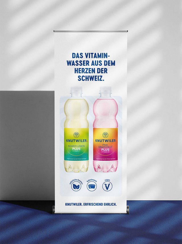 KNUTWILER steht für natürliches Mineralwasser aus der Zentralschweiz – regional verwurzelt und mit höchsten Qualitätsansprüchen. Im Jahr 2024 hat KNUTWILER einen mutigen Schritt gemacht und nicht nur das Logo, sondern auch das gesamte Produkterscheinungsbild neu gedacht. Nach dem Rebranding durften wir KNUTWILER dabei unterstützen, die neue Markenwelt konsistent in Online- und Offline-Massnahmen zu übersetzen. Ziel war es, die Werte Natürlichkeit, Herkunft und Qualität modern und eigenständig erlebbar zu machen – ohne den vertrauten Charakter der Marke zu verlieren.